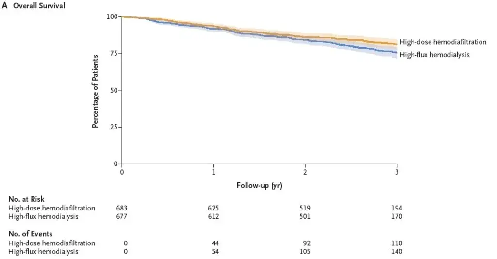 **Artigo**: Effect of Hemodiafiltration or Hemodialysis on Mortality in Kidney Failure ([link](https://www.nejm.org/doi/full/10.1056/NEJMoa2304820?query=featured_nephrology))